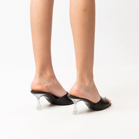 כפכף פריז - שקוף עקב בינוני עם רצועה שקופה של אדיס - 3232 - שחור / 36