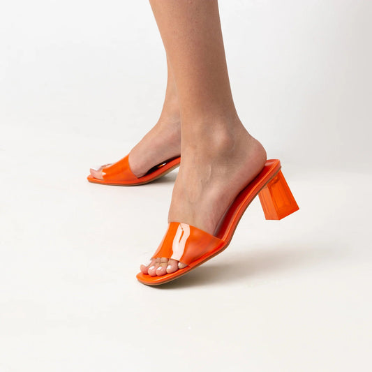 כפכף פריז - שקוף עקב בינוני עם רצועה שקופה של אדיס - 3232 - כתום / 36