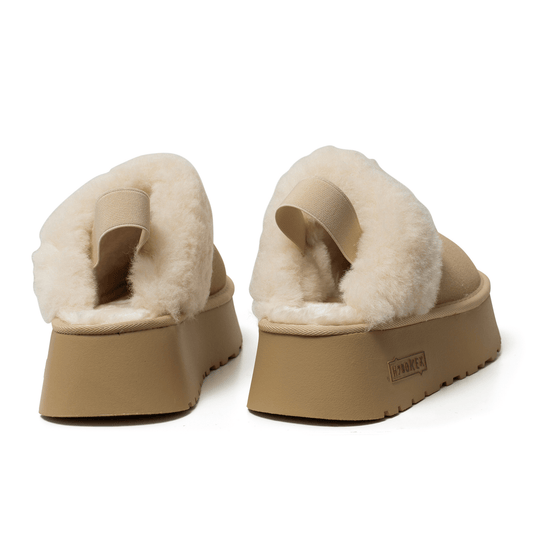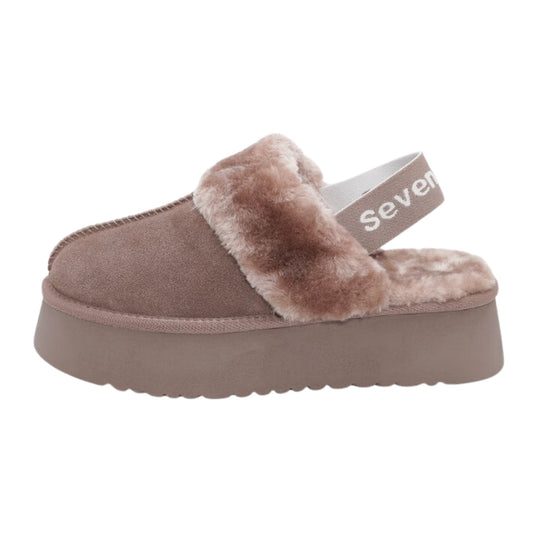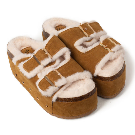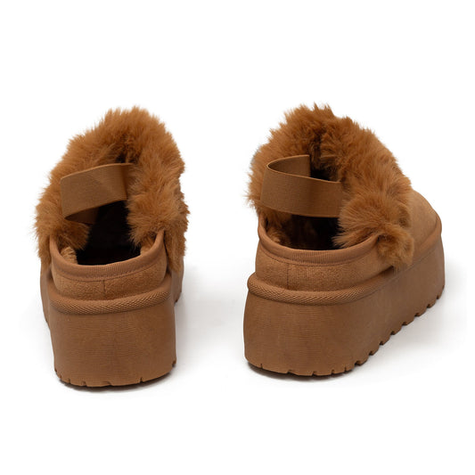 כפכפי פלטפורמה עם פרווה וגומי אחורי - קאמל / 36