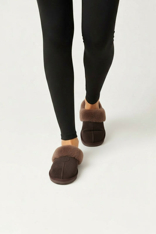ספוטי- נעלי בית עם בטנת פרווה - חום / 36