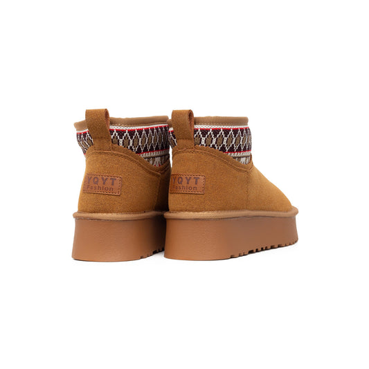 אנטרקטיקה - מגפון רקמה עם פרווה ופלטפורמה - קאמל / 36