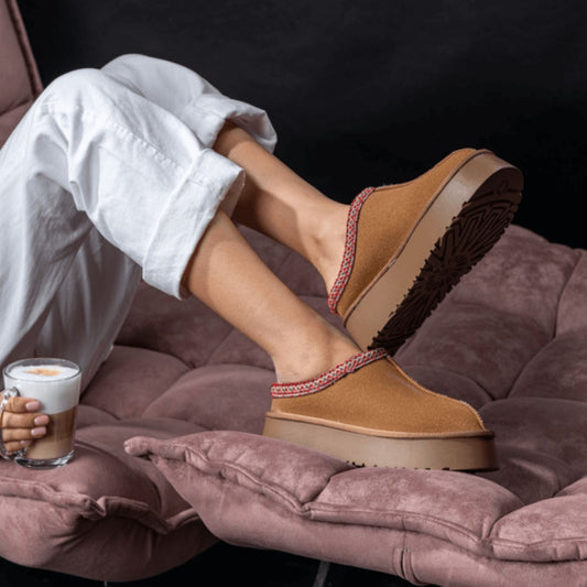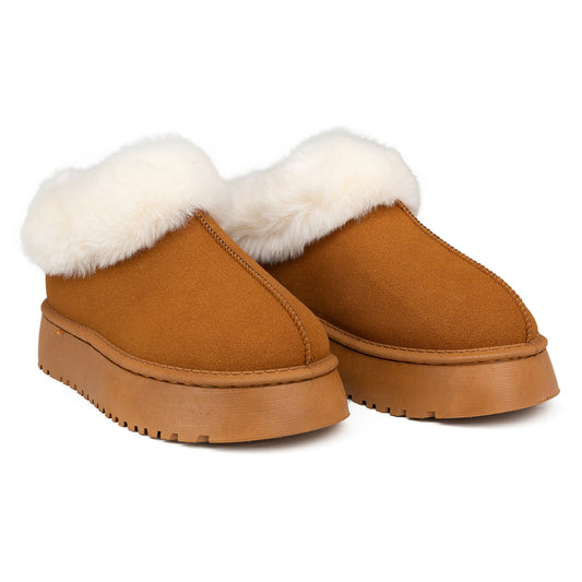 אספן- נעלי פרווה סגורות עם סוליה פלטפורמה - קאמל / 36