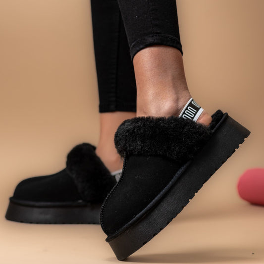 אספן- נעלי פרווה סגורות עם סוליה פלטפורמה - שחור / 36