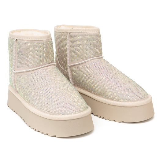 פטגוניה- מגפיים פלטפורמה עם פרווה ואבנים - בז / 36