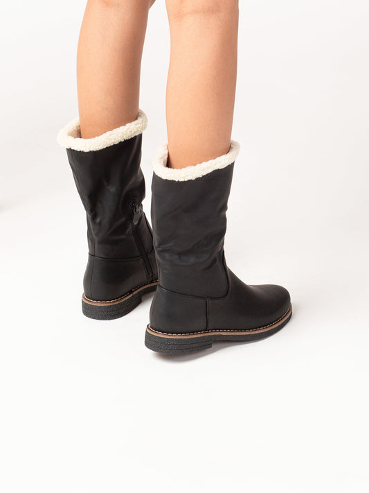 מגפיים טליה - גבוהות דמוי עור עם פרווה לנשים בצבע שחור - 92526 - שחור / 36