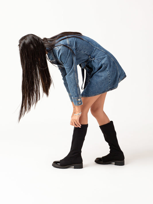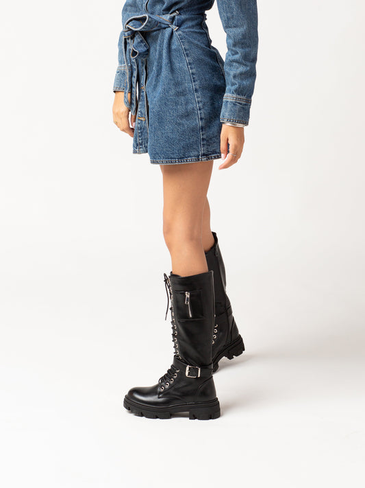 מגפיים אדל גבוהות עם שרוכים וכיס בצבע שחור - 9206 - שחור / 36