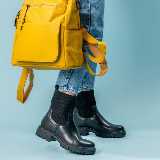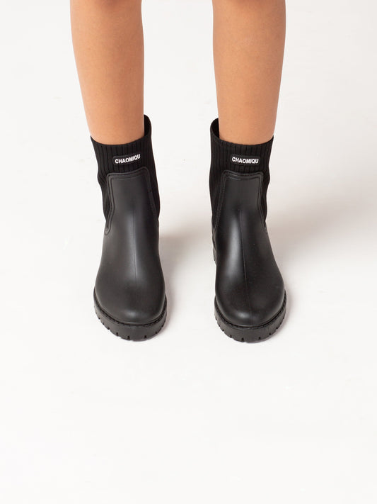 מגפונים מגומי בשילוב בד גרב - 906 - שחור / 36