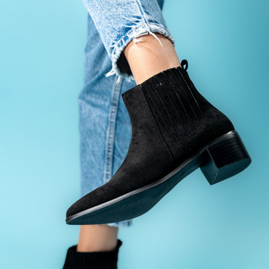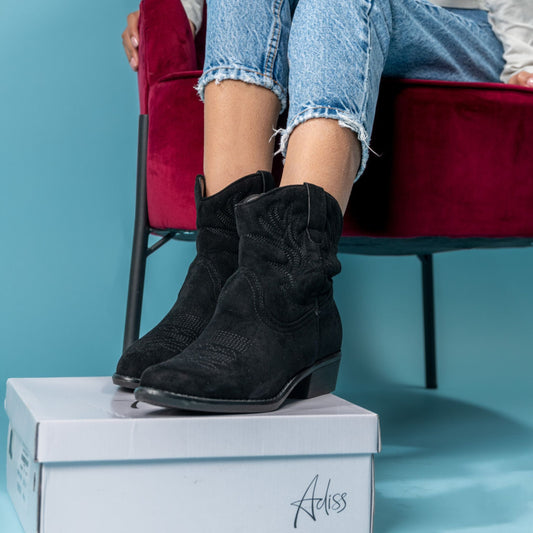 מגפון עקב בוקרים קצר דמוי זמש - שחור / 36