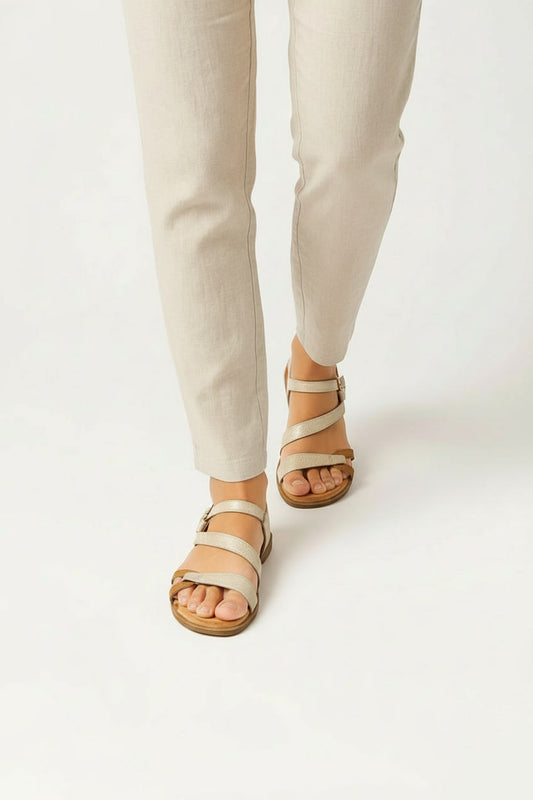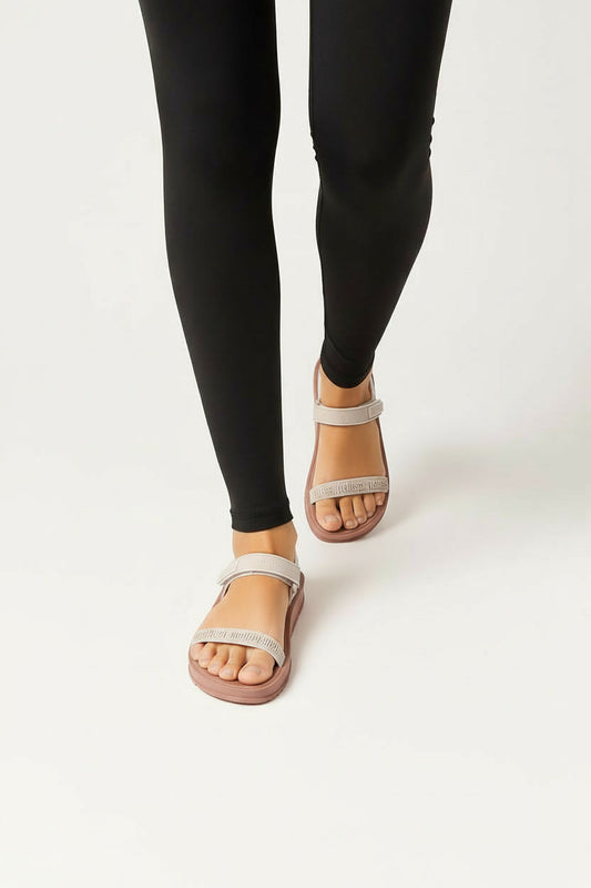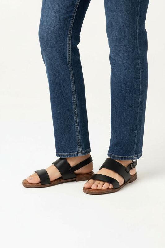 סנדלי פסי שמש- סנדלים שטוחים עם רצועות פס רחבות של אדיס לנשים