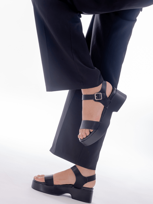חנה- סנדלי פלטפורמה סבנטי ניין לנשים - שחור / 36