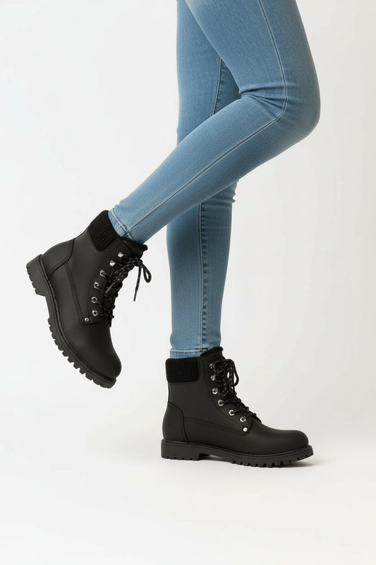 מנהטן - סניקרס עור פלטפורמה גבוהה - שחור / 36