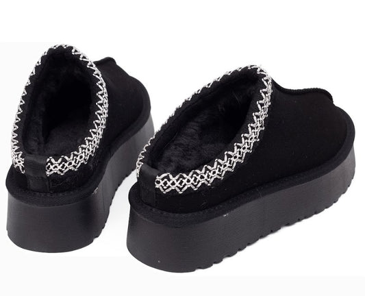 כפכפי פרווה פלטפורמה מוגבהות עם גומי אחורי - שחור מנומר / 36