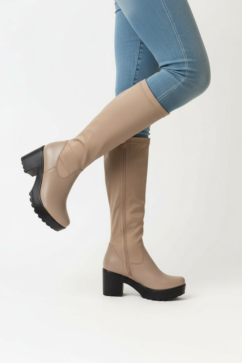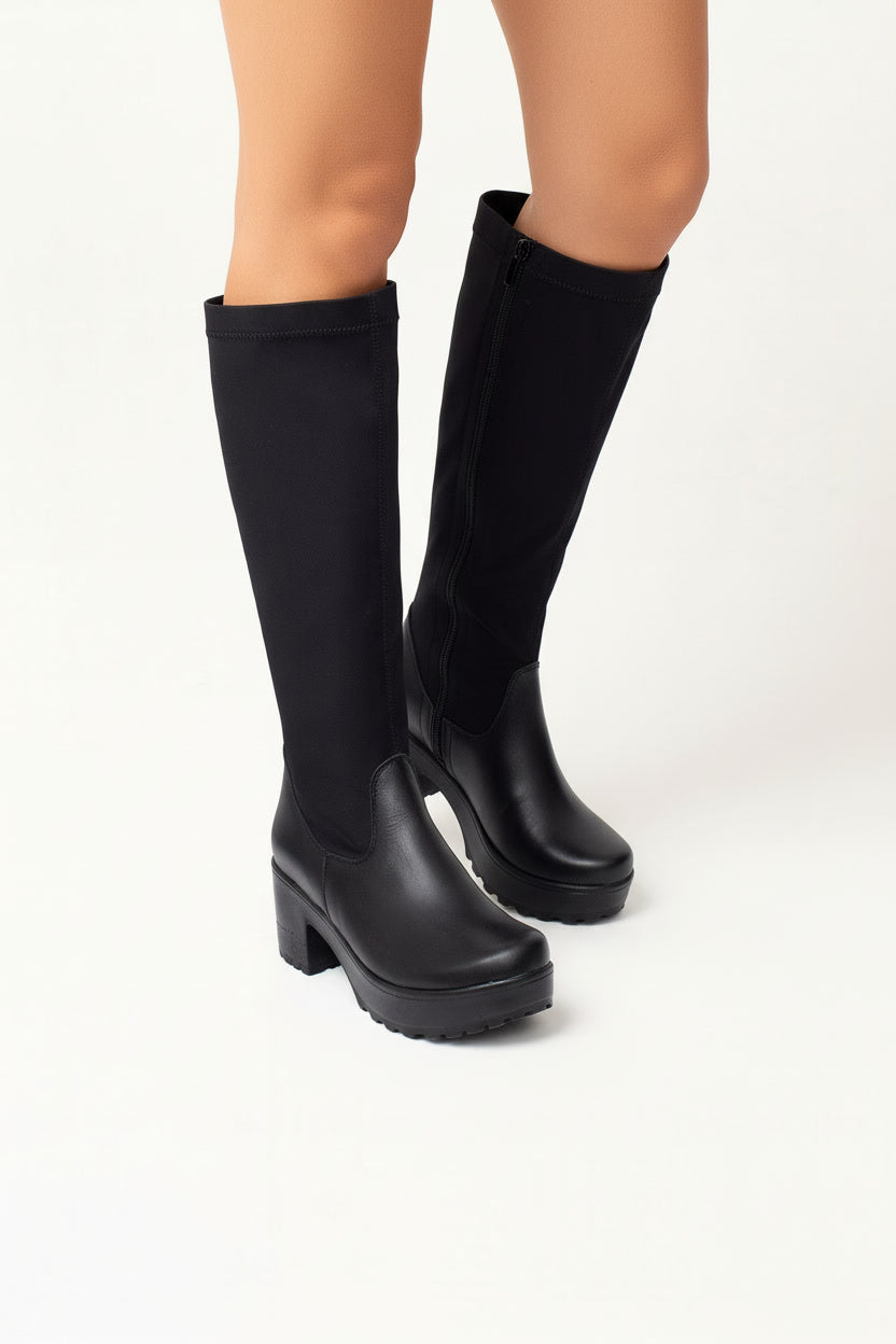 ברלין- מגפי נשים מעור עם לייקרה וסוליה פלטפורמה מק"ט 486