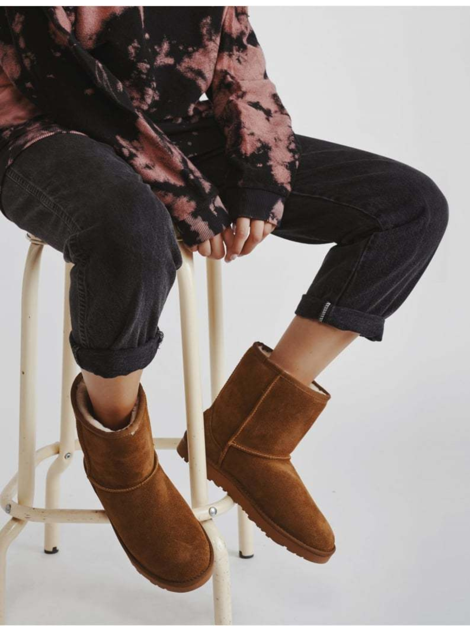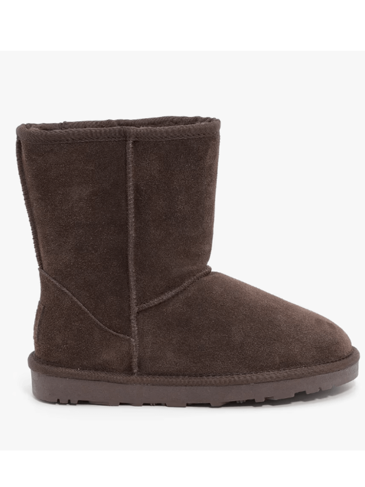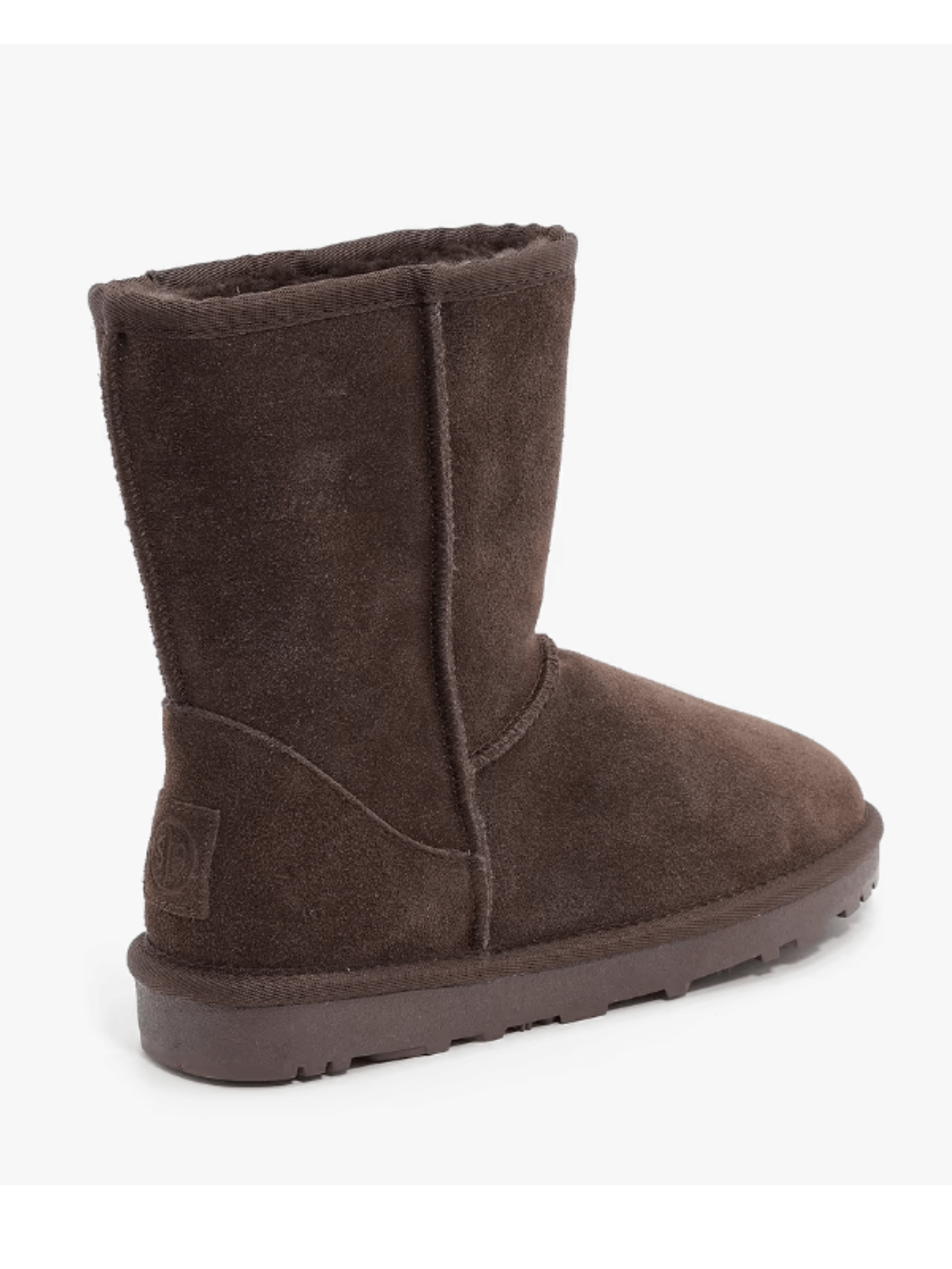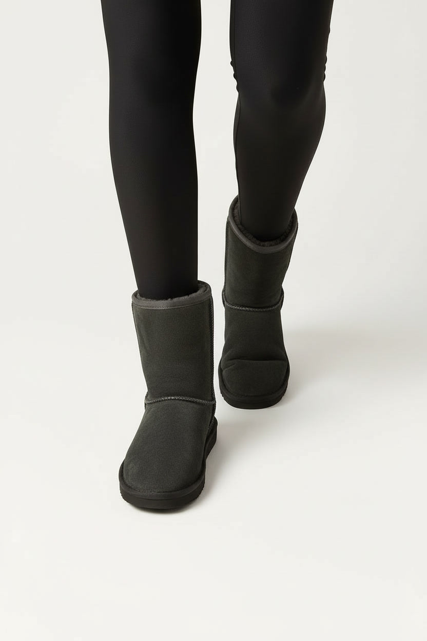 מגפי חורף קלאסיים עשויים זמש עם פרווה פנימית מחממת, תפרים עבים חיצוניים וסוליה קלת-משקל.