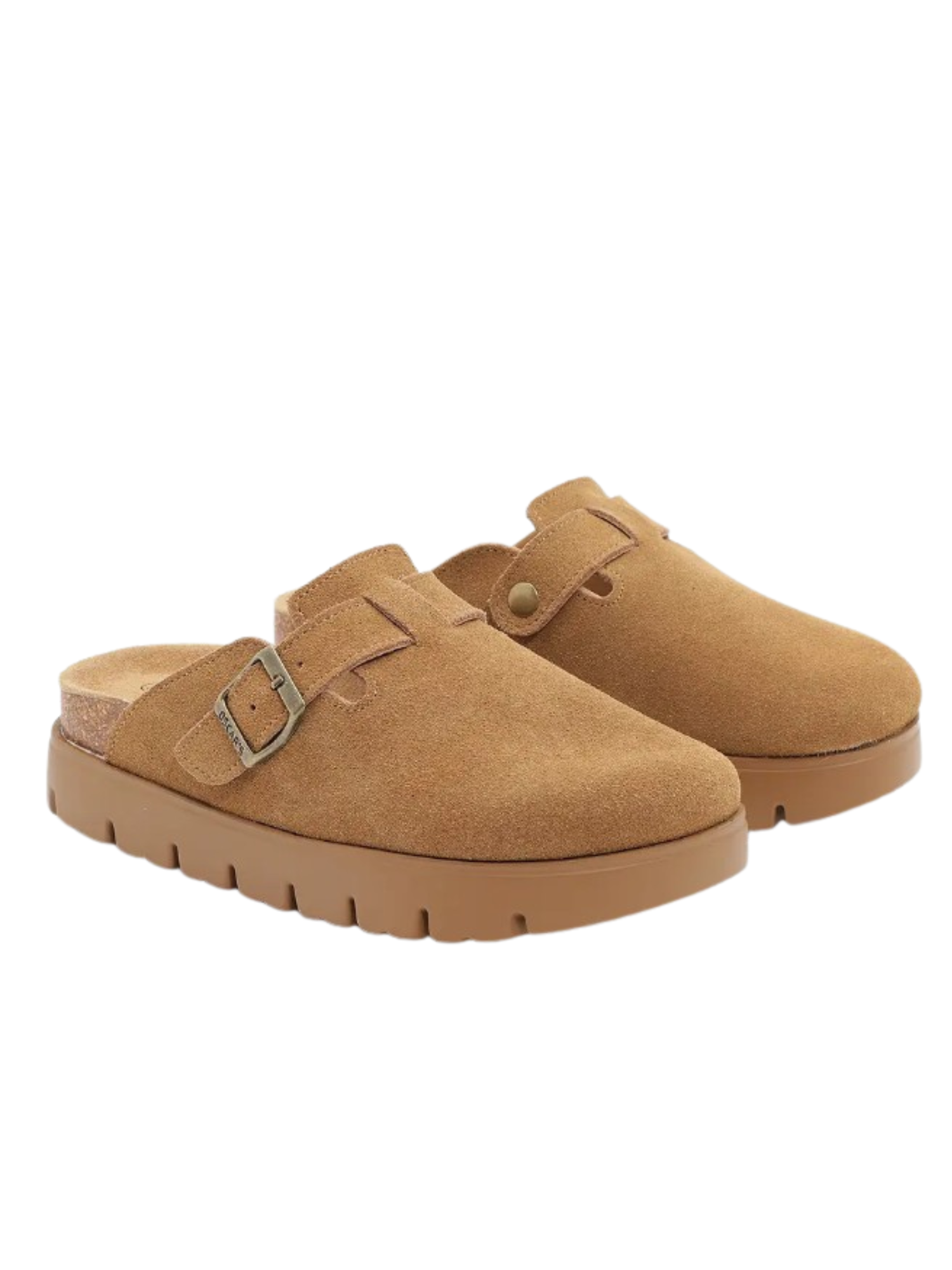 כפכפים לנשים מעור הפוך (זמש), סגורים מקדימה ועם חרטום עגול. רצועת אבזם מתכווננת, רפידת עור נוחה מדרך שעם נוח וסוליית גומי לבנה עם חריצים. *הכפכפים מגיעים בארבעה צבעים לבחירה- שחור, שחור/לבן, חול וקאמל*