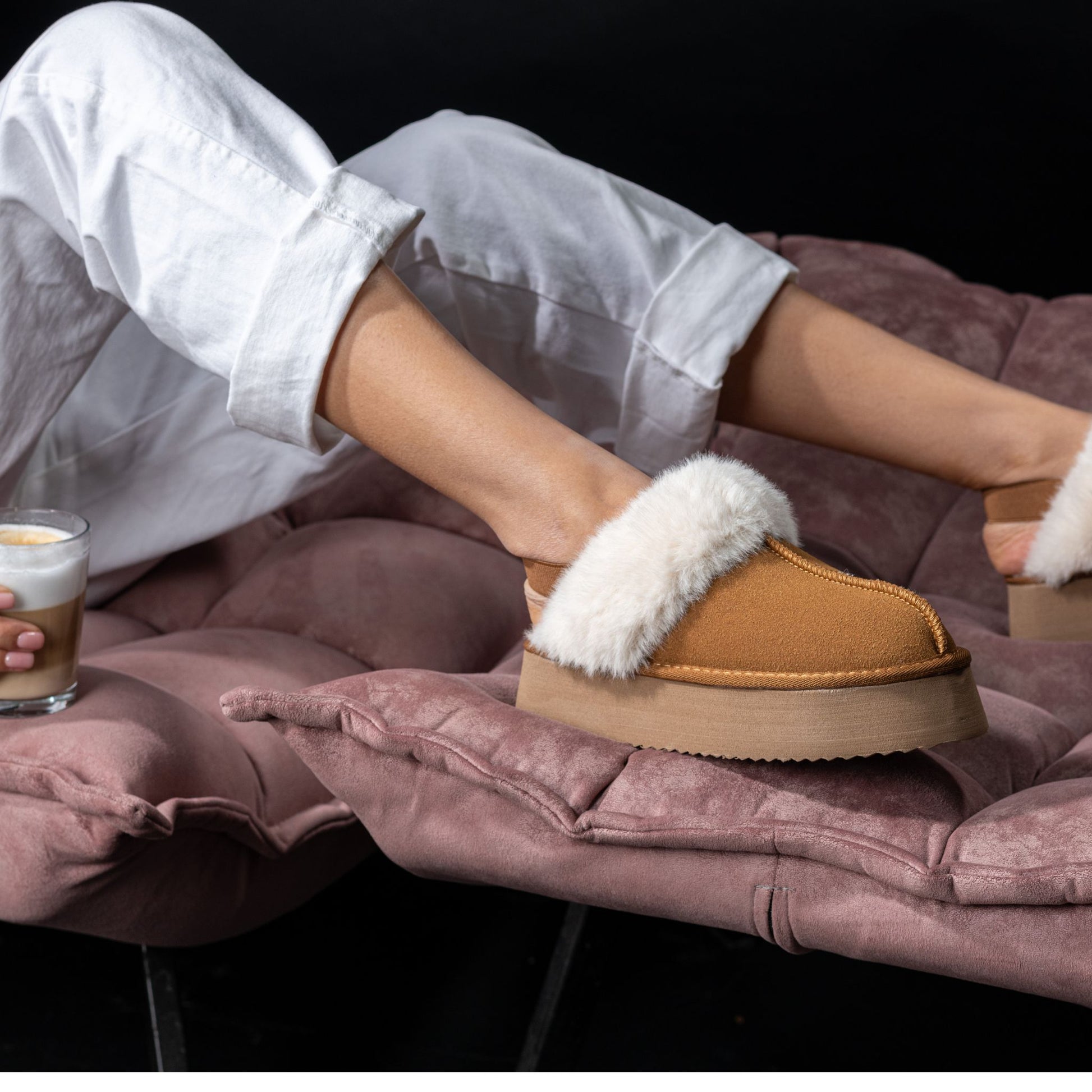 כפכפי פלטפורמה עם פרווה וגומי אחורי בצבע בז |36-41 | ADISS BEIGE 0829