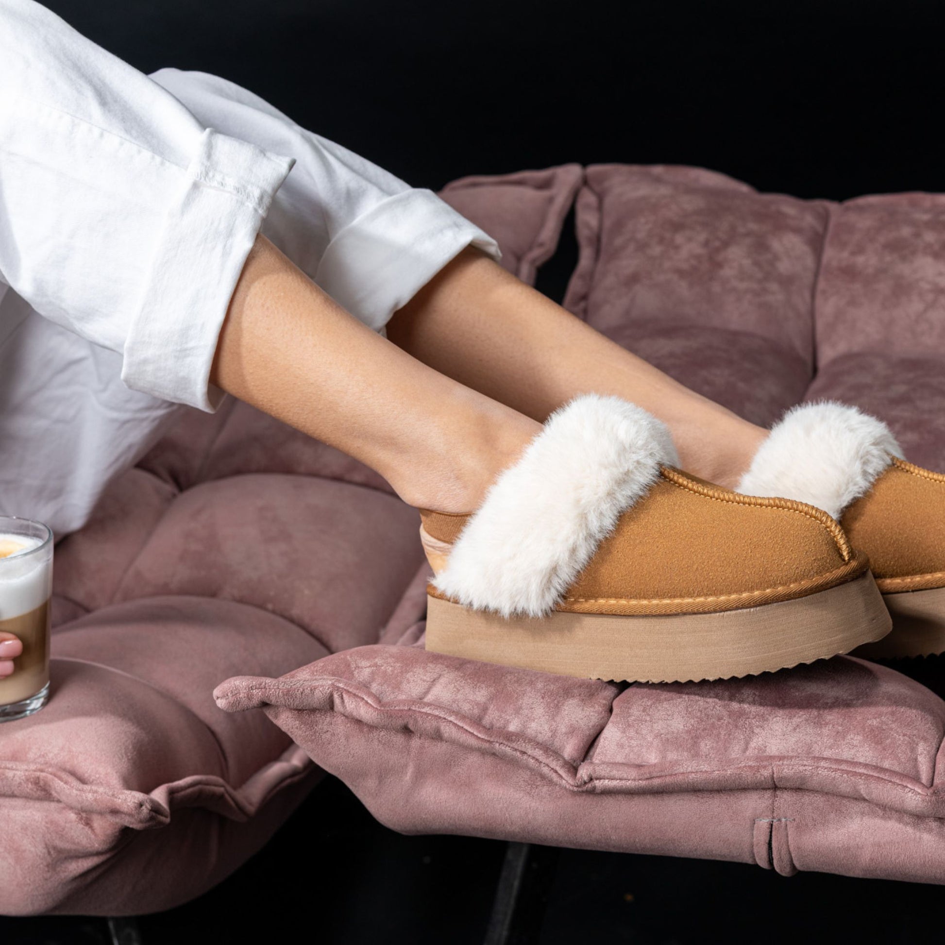 כפכפי פלטפורמה עם פרווה וגומי אחורי