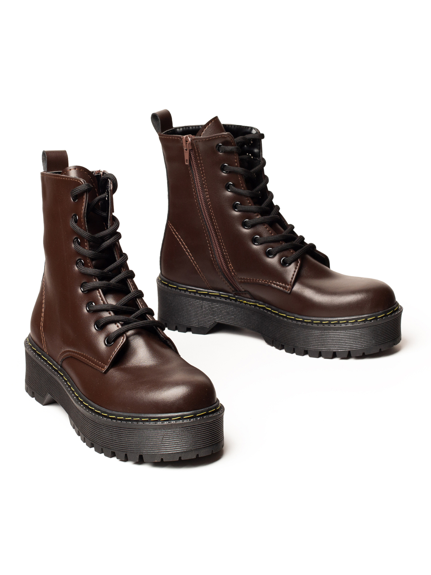 הנעליים הטרנדיות שאת פשוט חייבת אותן , מגפונים עם שרוכים ורוכסן בצד הפנימי סוליה פלטפורמה מוגבהת כ 5 ס"מ עשויות דמוי עור 100 % טבעוני .