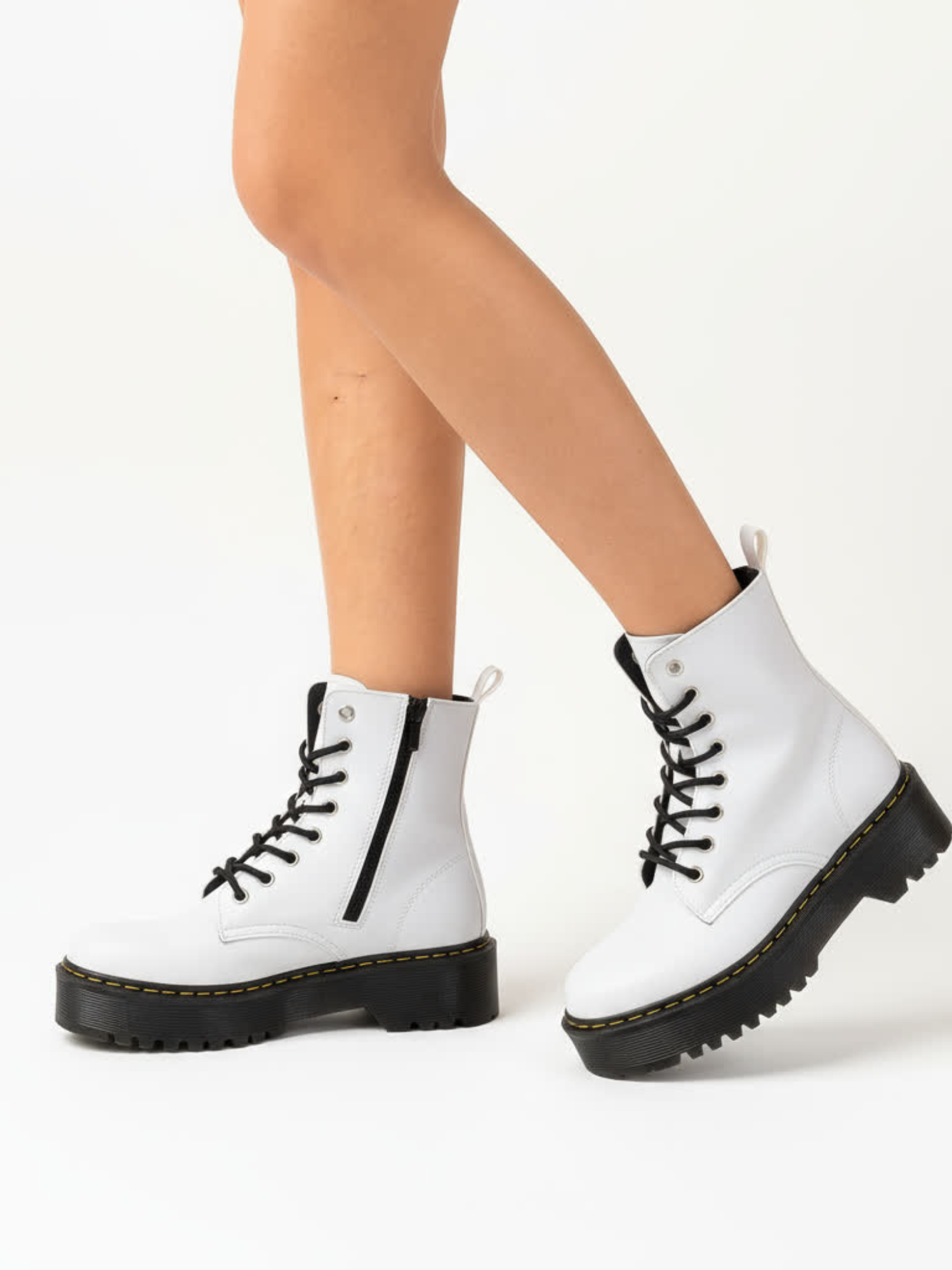 הנעליים הטרנדיות שאת פשוט חייבת אותן , מגפונים עם שרוכים ורוכסן בצד הפנימי סוליה פלטפורמה מוגבהת כ 5 ס"מ עשויות דמוי עור 100 % טבעוני .
