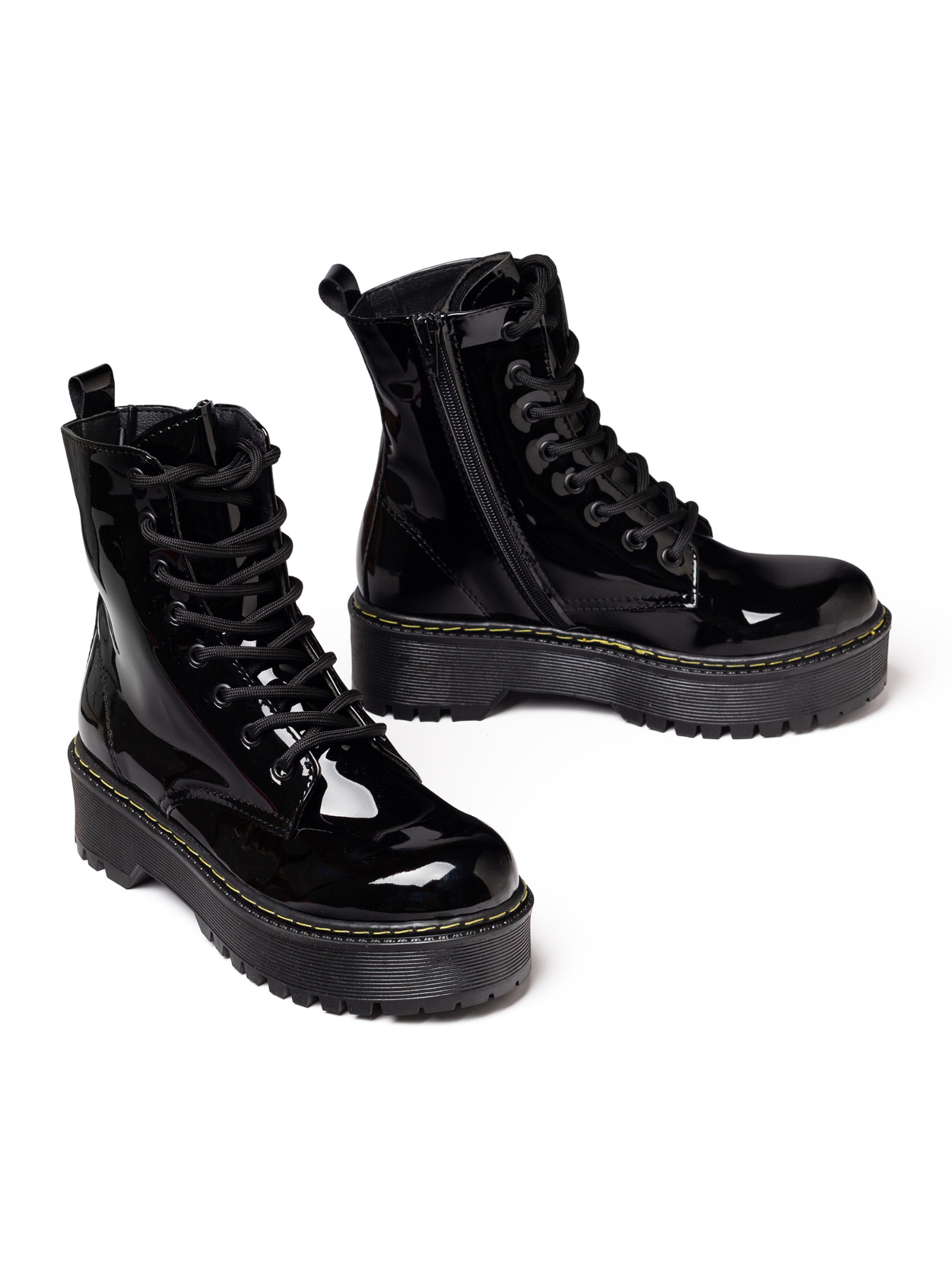 הנעליים הטרנדיות שאת פשוט חייבת אותן , מגפונים עם שרוכים ורוכסן בצד הפנימי סוליה פלטפורמה מוגבהת כ 5 ס"מ עשויות דמוי עור 100 % טבעוני .